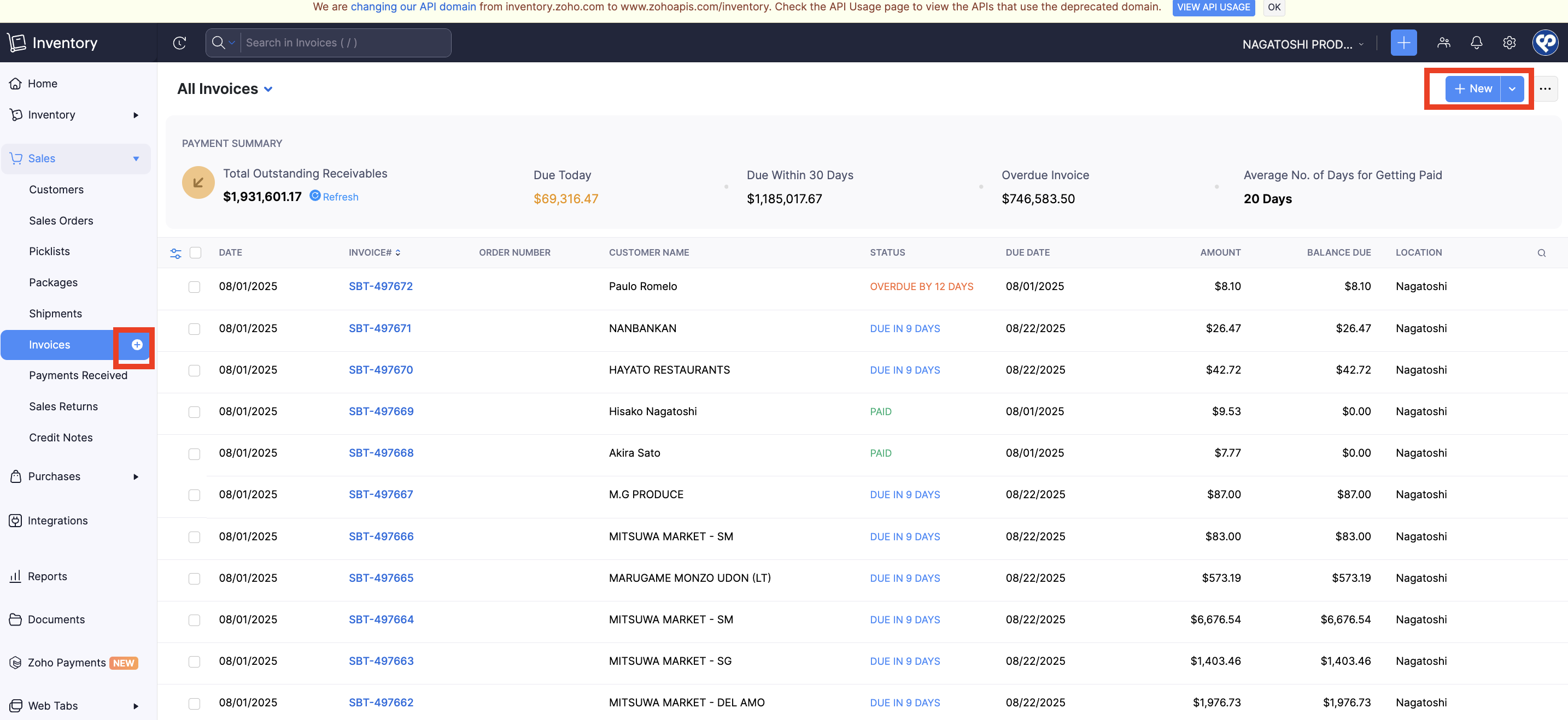 Go to Zoho Inventory -> Sales -> Invoice. Click "New" on the top right or "plus" near Invoices.